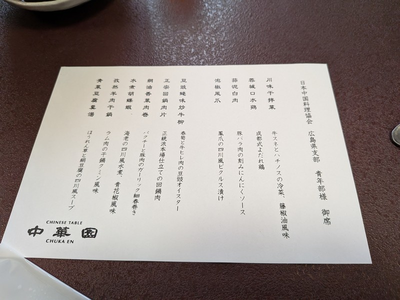 四川料理をテーマにコースで披露頂き、最後に一品ずつ説明して頂きとても分かりやすい勉強会でした。