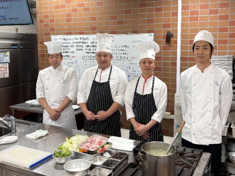 今回も若手の方に調理担当をお願いしました。「普段作っている賄い料理」というテーマで来春に就職先でも作れる献立をお願いしました。